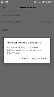 Como alterar o número de telefone do Tik tok.