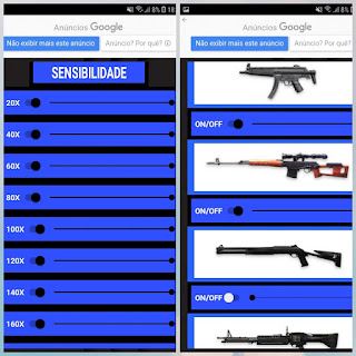 Como essa ferramenta é voltada para o free fire, ela vai te mostrar as várias opções que tem nela e também as armas que você quer ativar a sensibilidade. Como eu mostro aqui na foto abaixo.